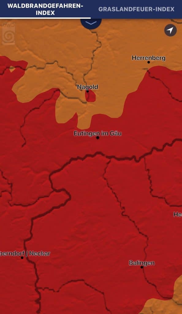 Der Deutsche Wetterdienst informiert auf seinen Seiten über den aktuellen Waldbrandgefahrenindex und den Grasland-Feuerindex auch für Ihre Region. Hier gelangen Sie direkt auf die Seiten des Deutschen Wetterdienstes.