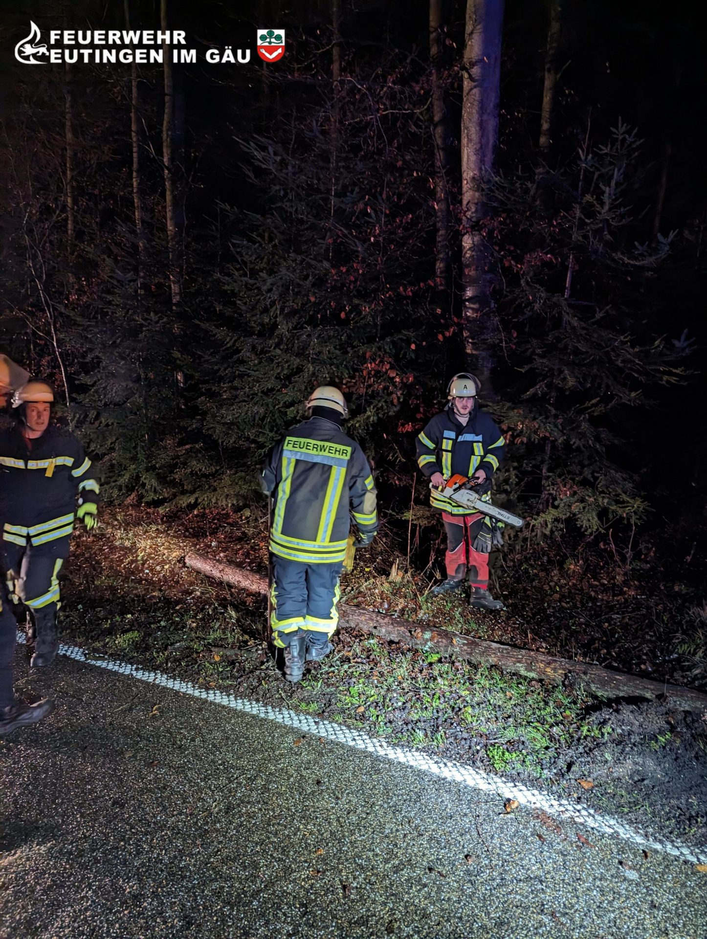 Am Donnerstagabend um 21:20 Uhr wurde unsere Abteilung Eutingen zu einer technischen Hilfeleistung alarmiert. Zwischen Eutingen und Hochdorf hatte der Sturm einen Baum auf die B463 umgeworfen. Dieser konnte zwar von Autofahrern schon etwas zur Seite geräumt werden, es war jedoch noch immer eine Fahrbahn blockiert. Da es sich um ein sehr kurvenreiches und nicht einsehbares Teilstück der Straße handelt, wurde die Feuerwehr alarmiert um die Unfallgefahr zu minimieren. Unsere Kameraden konnten den Baum komplett von der Fahrbahn beseitigen, so dass die Polizei die Straße wieder für den Verkehr freigeben konnte.