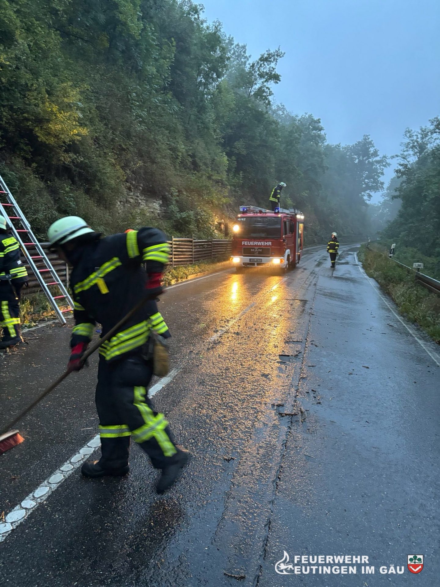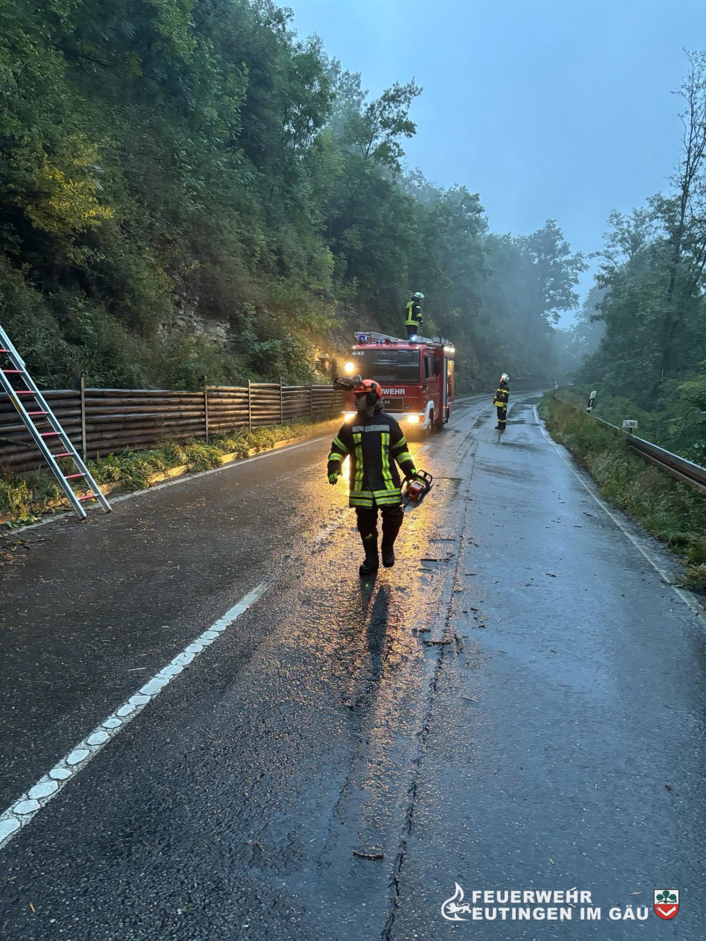 Am Dienstag, 23. September 2025, wurde die Abteilung Weitingen zu einem Hilfeleistungseinsatz alarmiert. Etwa 200m außerhalb des Orts war ein Baum umgekippt und auf ca 2 Metern Höhe hängen geblieben. Da dies ein großes Verletzungsrisiko für Verkehrsteilnehmer, vor allem Lkw und Busse darstellte, musste diese Gefahr beseitigt werden. Die Feuerwehr entfernte die in die Fahrbahn hineinhängende Baumkrone, so dass von dem Baum keine weitere Gefahr für Verkehrsteilnehmer ausging.