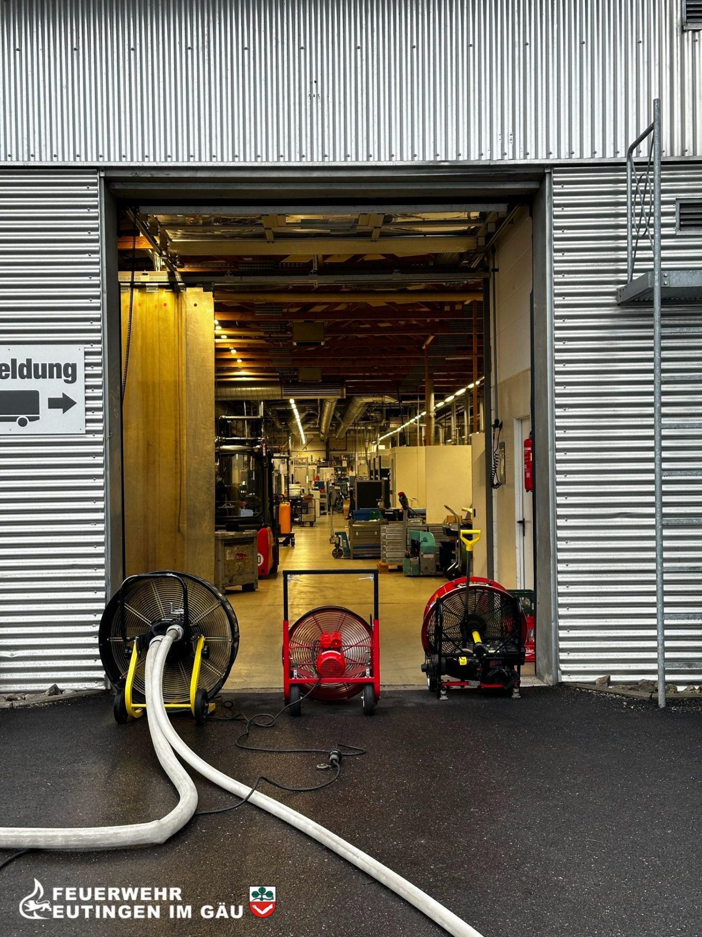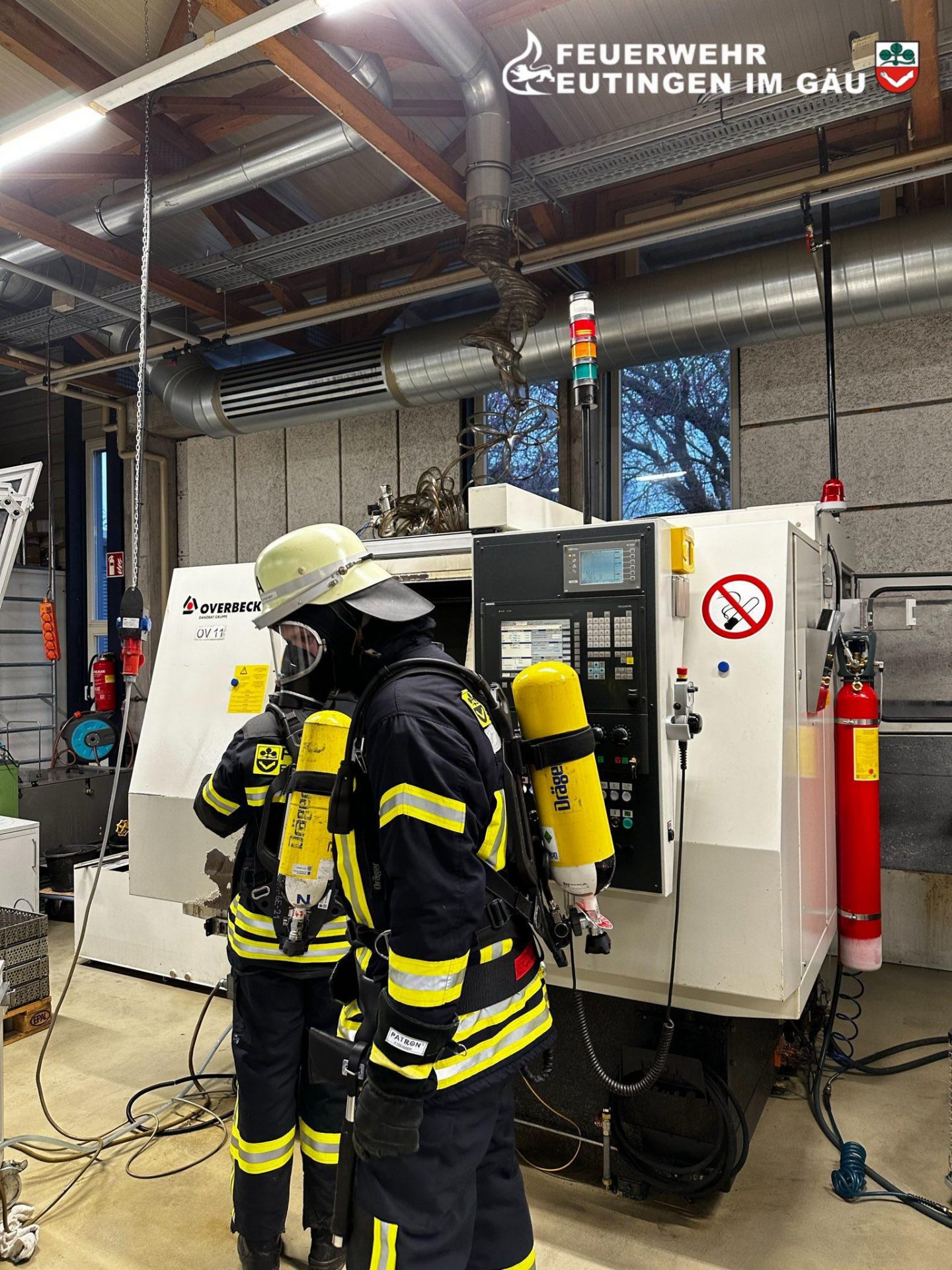 Die Maschine und der umgebende Bereich wurden von der Feuerwehr unter Atemschutz mit einer Wärmebildkamera kontrolliert. Dabei stellte sich heraus, dass keine weitere Löschmaßnahmen durch die Feuerwehr notwendig waren. Ebenso wurde der Ölabscheider und die Absaugungsanlage im ersten Stock kontrolliert. Anschließend wurde die Halle durch die Feuerwehr belüftet und vollständig rauchfrei gemacht.