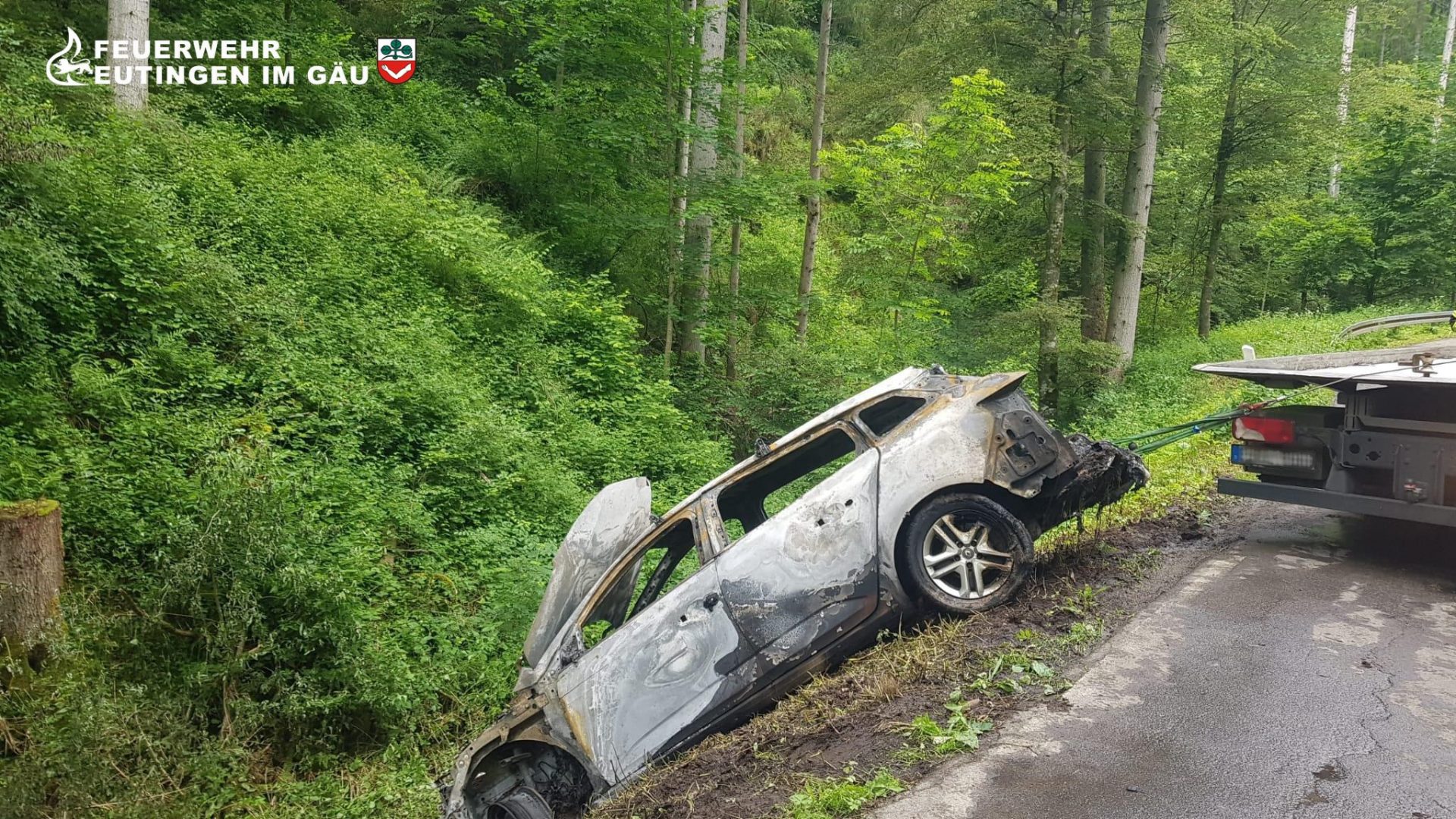 Der Insasse konnte sich nach eigenen Angaben im letzten Moment vor dem Absturz durch einen Sprung aus dem Fahrzeug retten und blieb unverletzt.