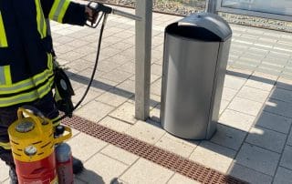 Am 11.6.2022 wurde eine Kleineinsatzgruppe der Feuerwehr Eutingen im Gäu zu einem brennenden Mülleimer am Bahnhof Hochdorf alarmiert.